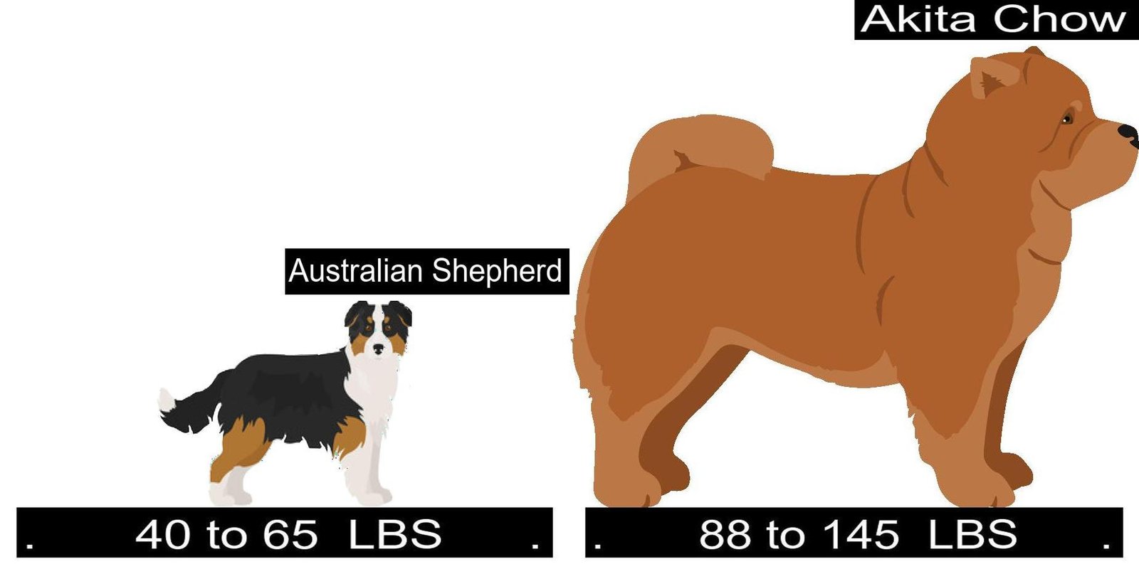 Size Comparison of the Australian Shepherd versus Akita Chow