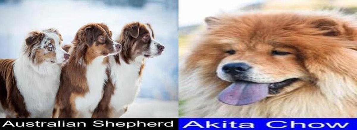 Below is a list of where the Australian Shepherd and the Akita Chow are most different: