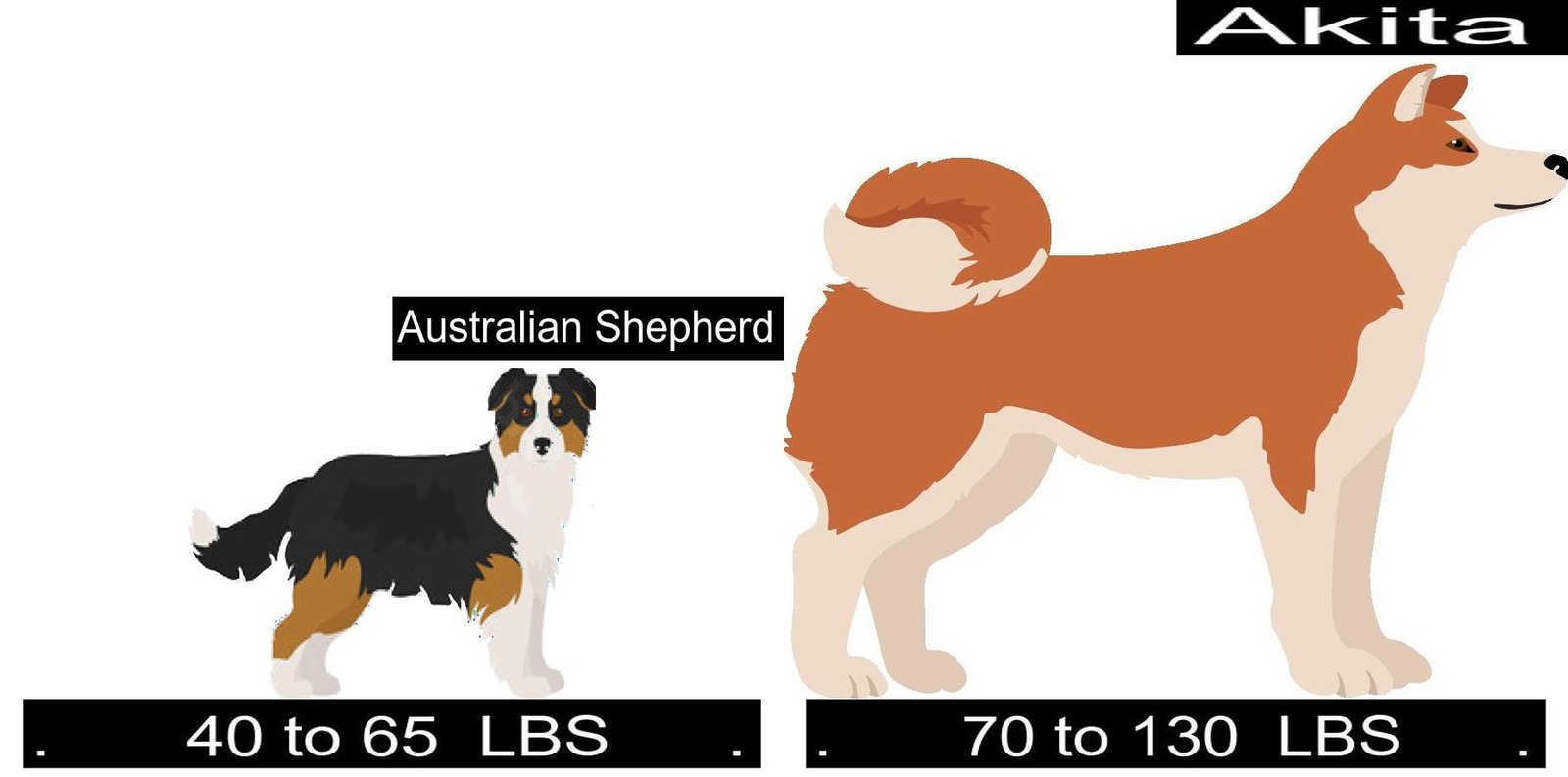 Now, let us discuss the difference in size between the Australian Shepherd and the Akita.
