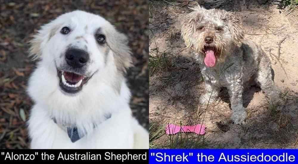 The Australian Shepherd and the Aussiedoodle can both be adopted. Images from petfinder.com