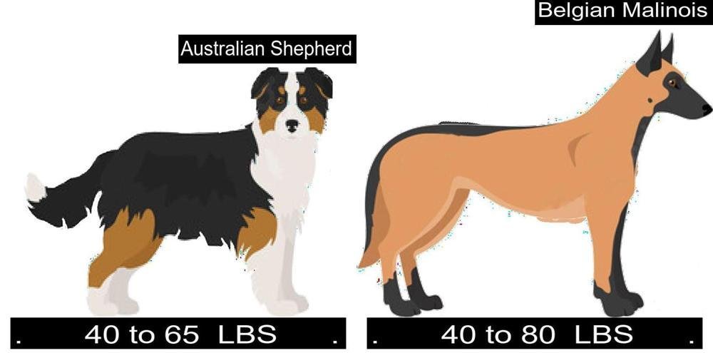 - Size Comparison of the Australian Shepherd versus Belgian Malinois