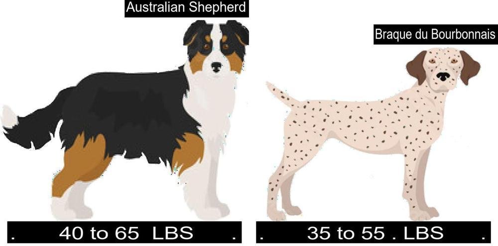 - Size Comparison of the Australian Shepherd versus Braque du Bourbonnais