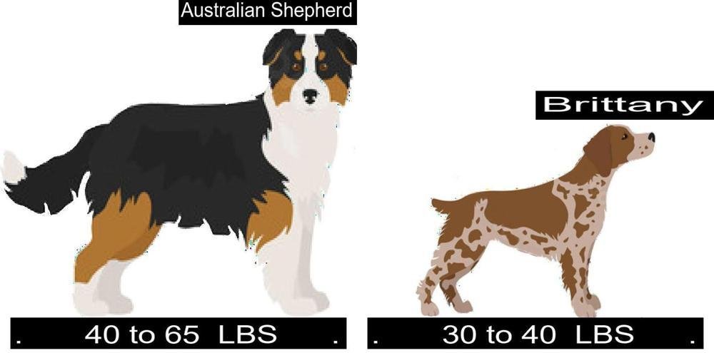 Size Comparison of the Australian Shepherd versus Brittany