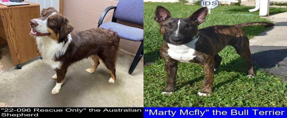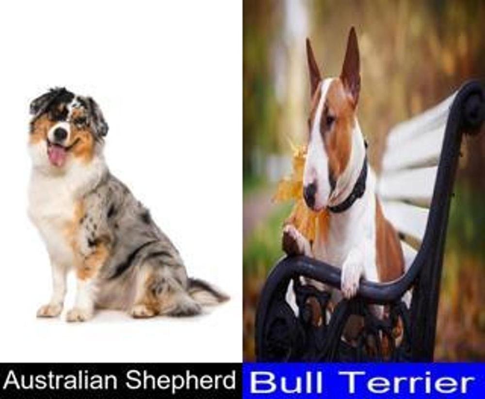 The Australian Shepherd and the Bull Terrier are very similar in certain aspects. Below is the list of where the Australian Shepherd and the Bull Terrier are most similar: