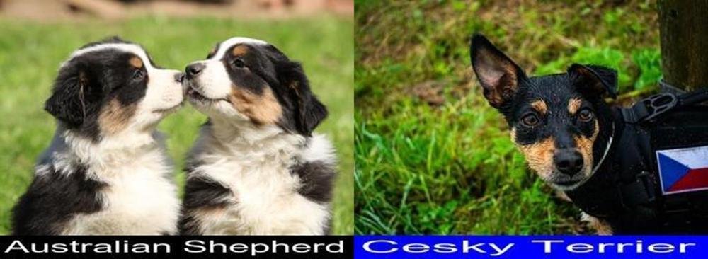 • Australian Shepherds have the tendency to develop certain health problems. However, Cesky Terriers are very healthy. They do not suffer from a lot of health problems compared to other dog breeds