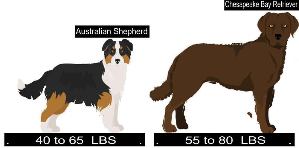 - Size Comparison of the Australian Shepherd versus Chesapeake Bay Retriever