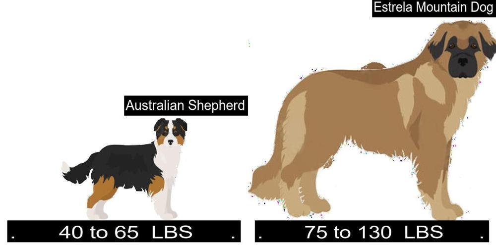 Size of Australian Shepherd versus Size of Estrela Mountain Dog