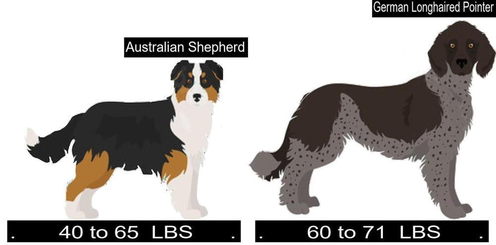Now, let us discuss the difference in size between the Australian Shepherd and the German Longhaired Pointer.