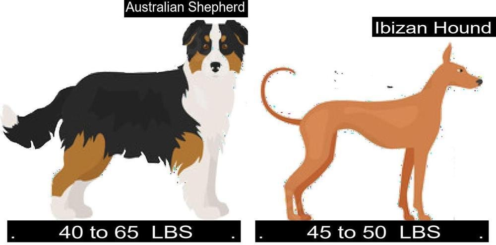 Size of Australian Shepherd versus Size of Ibizan Hound
