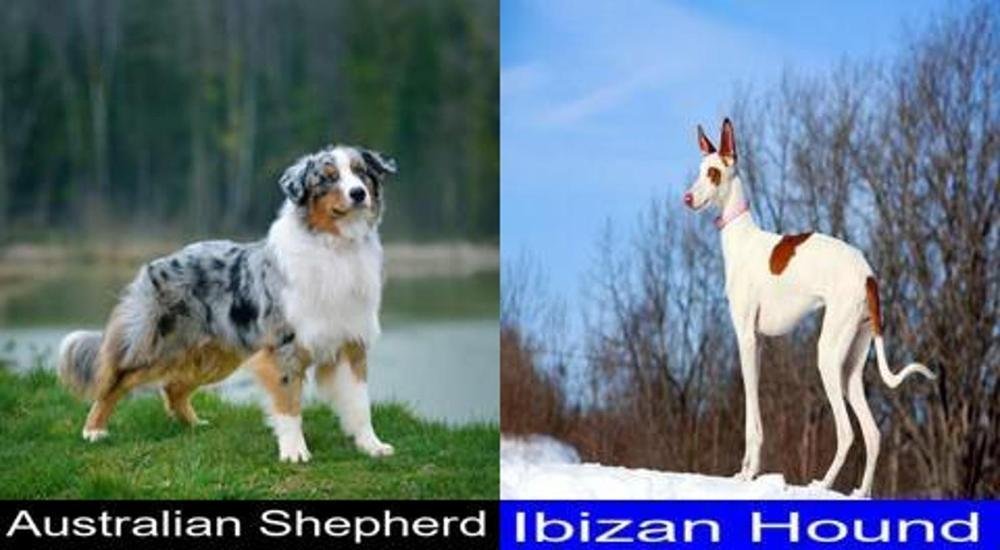 Differences and Similarities between the Australian Shepherd and the Ibizan Hound.