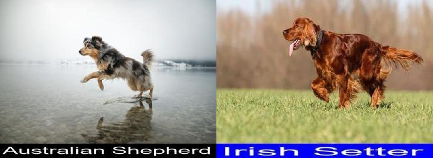 The Australian Shepherd and the Irish Setter are very similar in certain aspects. Below is the list of where the Australian Shepherd and the Irish Setter are most similar: