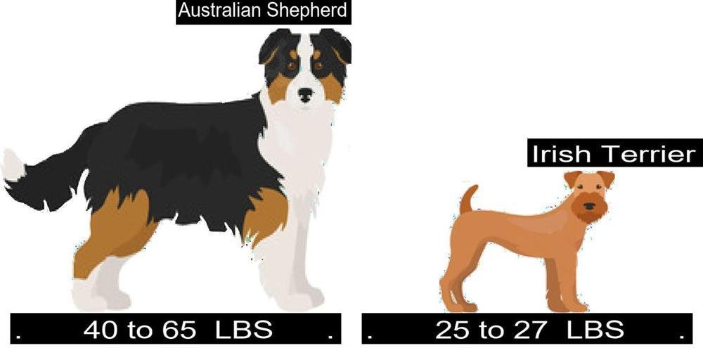 - Size Comparison of the Australian Shepherd versus Irish Terrier