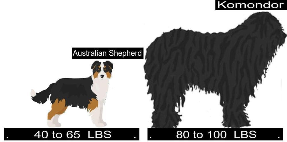 - Size Comparison of the Australian Shepherd versus Komondor