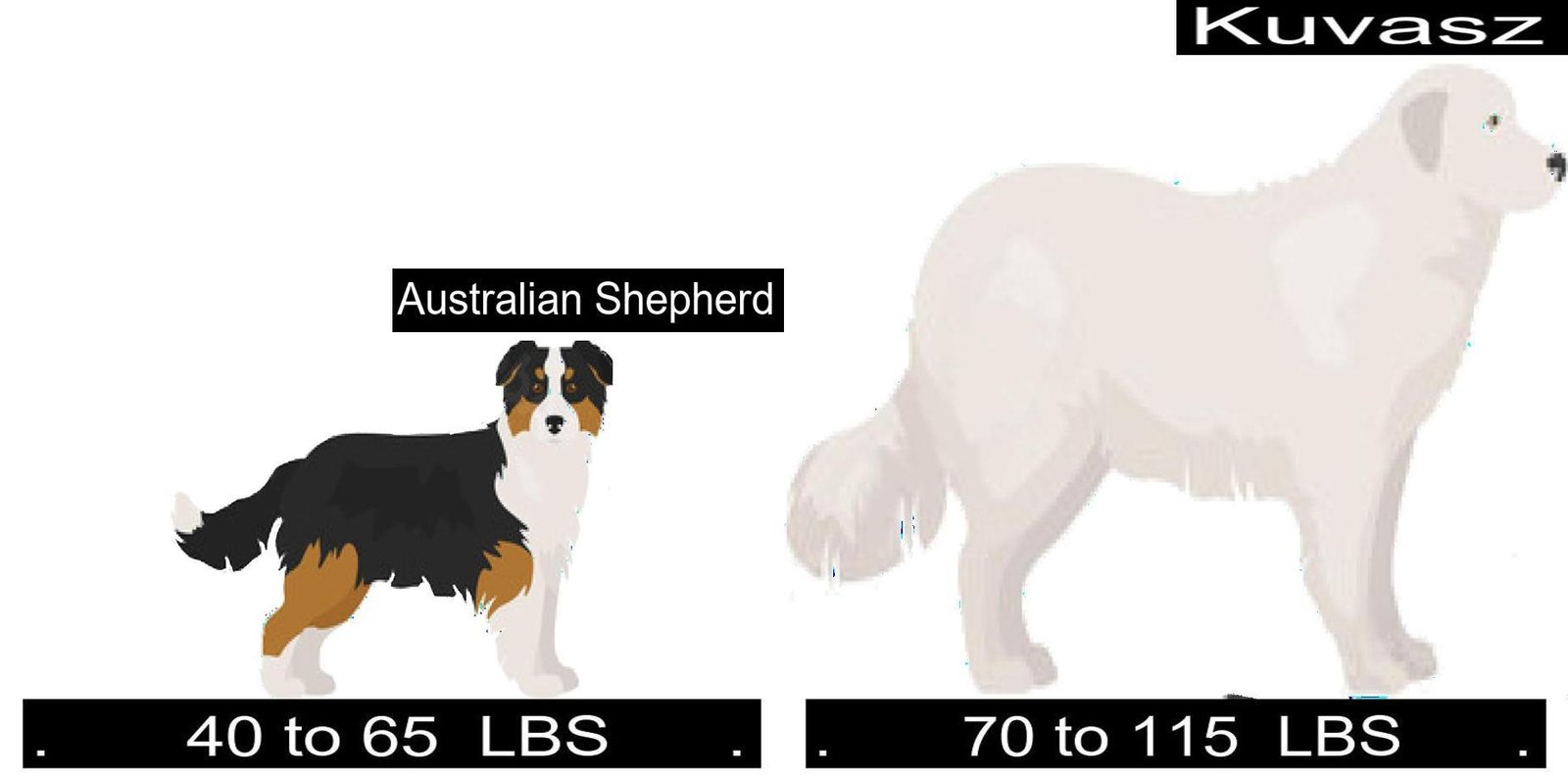 - Size Comparison of the Australian Shepherd versus Kuvasz