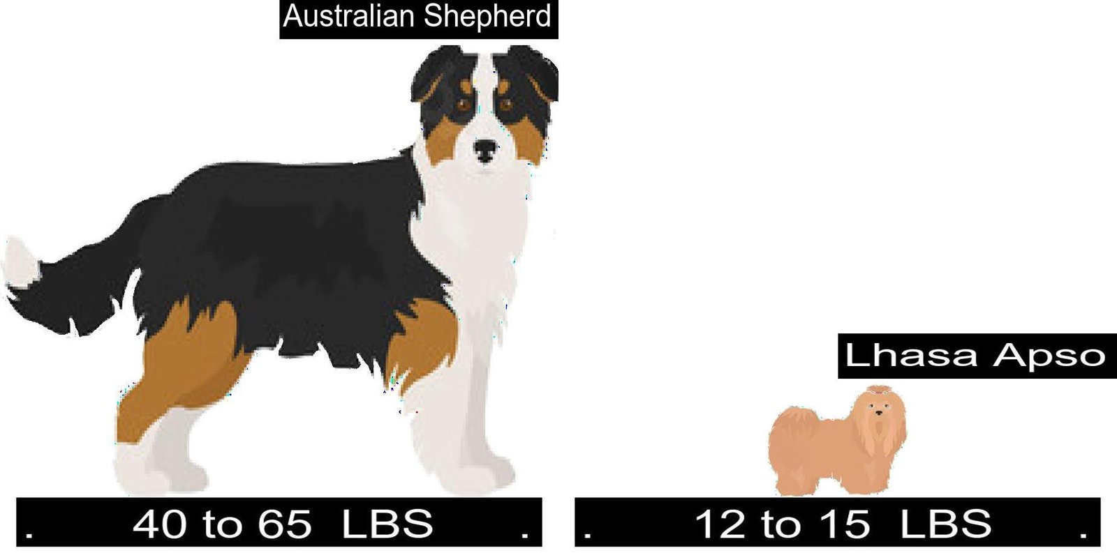 • Size Comparison of the Australian Shepherd versus Lhasa Apso
