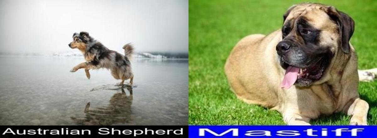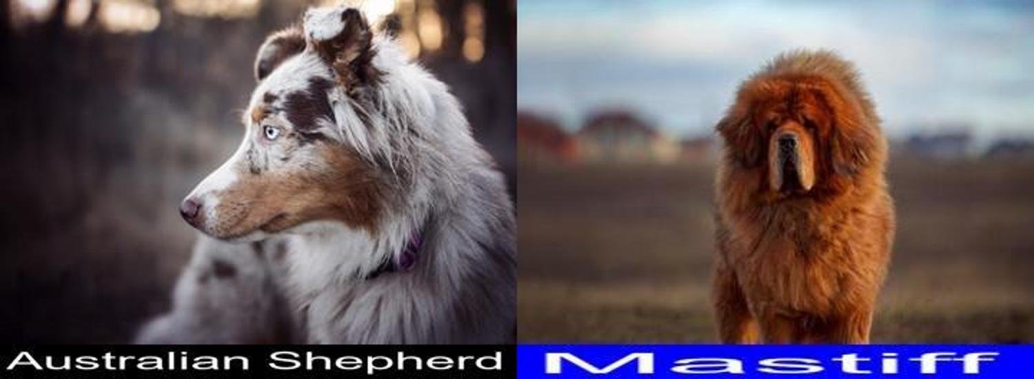 - Appearance (Colors) of the Australian Shepherd and the Mastiff