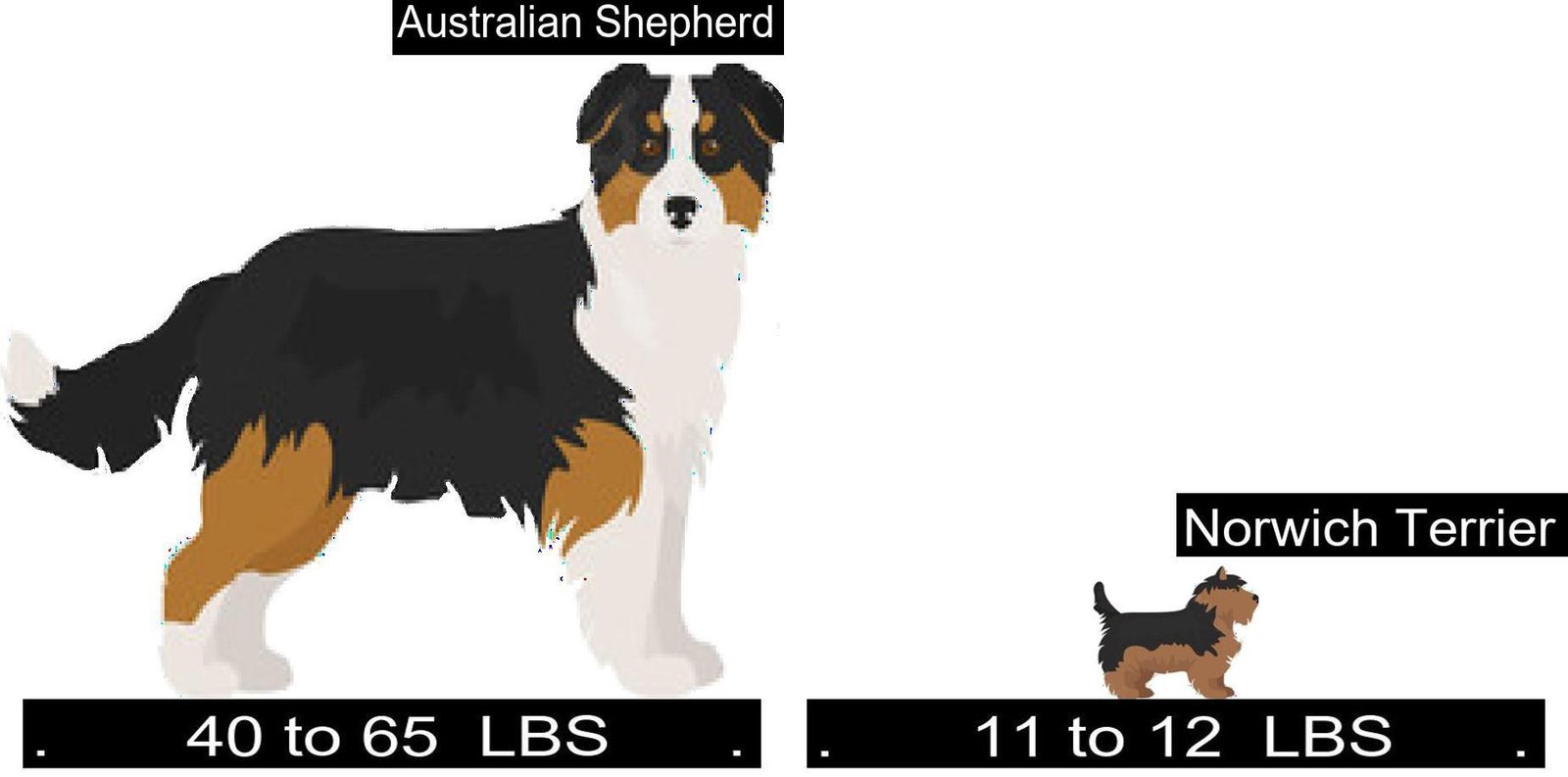 Now, let us discuss the difference in size between the Australian Shepherd and the Norwich Terrier.
