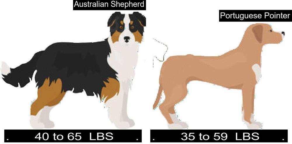 - Size Comparison of the Australian Shepherd versus Portuguese Pointer