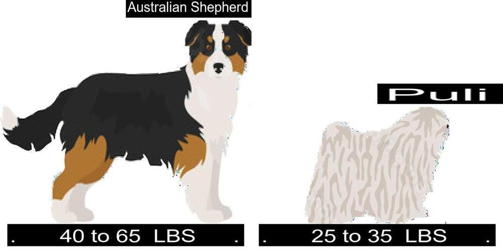 Both the Australian Shepherd and the Puli are similar in size. The Australian Shepherd and the Puli are both medium-sized dogs.