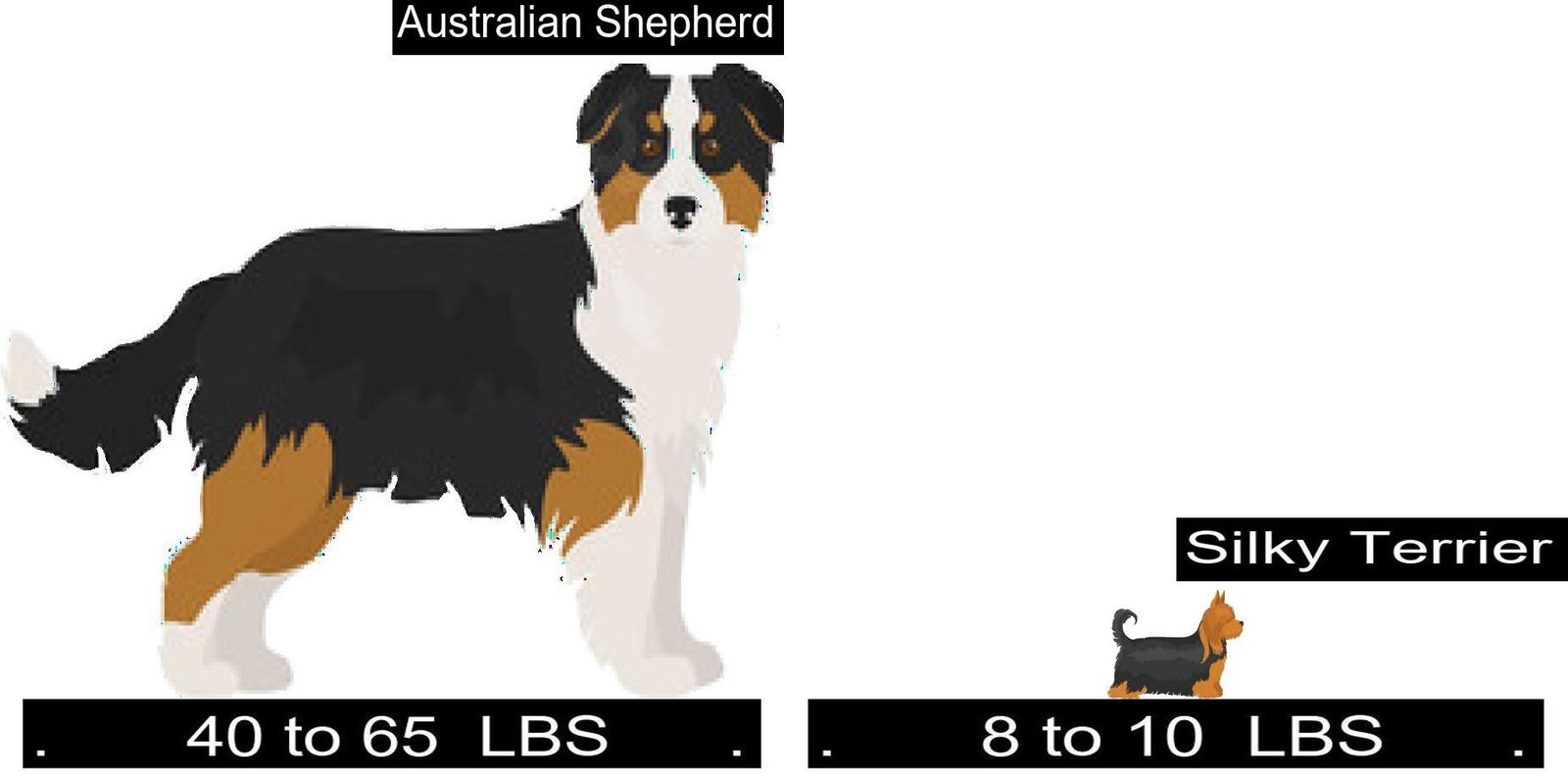 • Size Comparison of the Australian Shepherd versus Silky Terrier