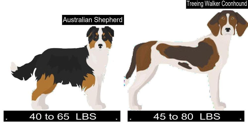 • Size Comparison of the Australian Shepherd versus Treeing Walker Coonhound