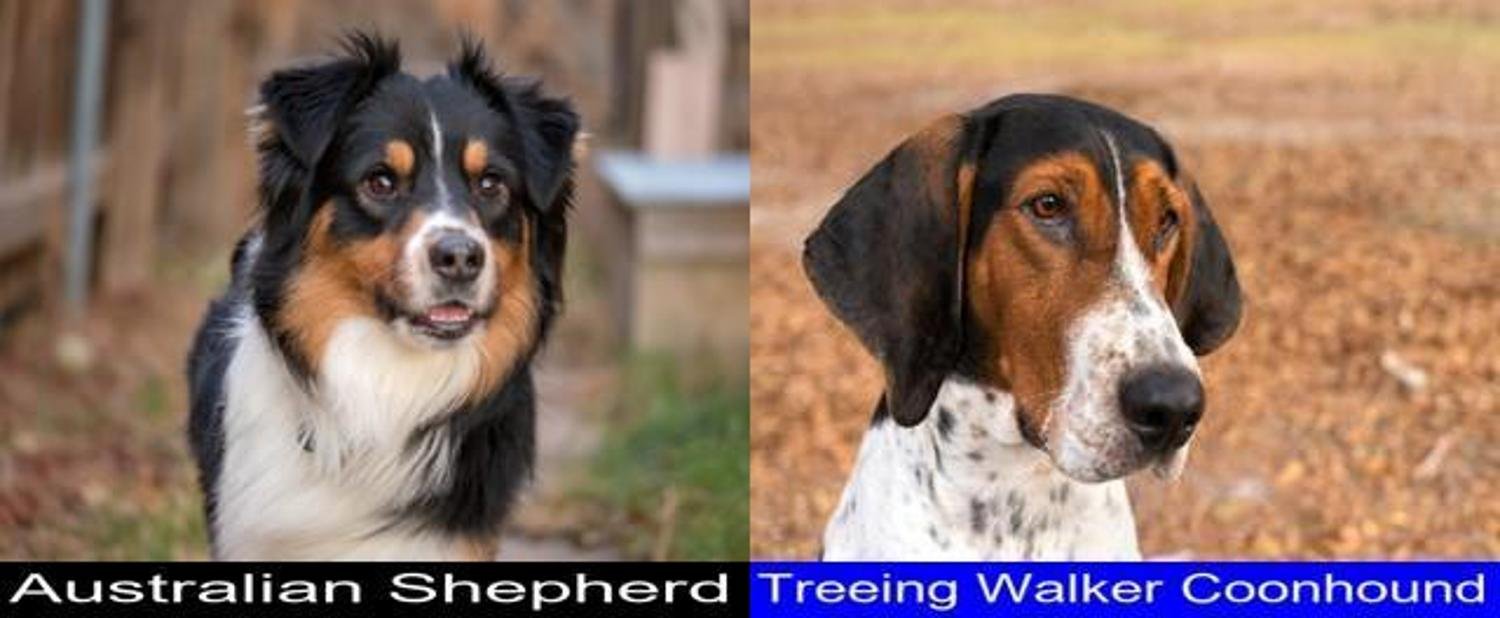 The Australian Shepherd and the Treeing Walker Coonhound are very similar in certain aspects. Below is the list of where the Australian Shepherd and the Treeing Walker Coonhound are most similar:
